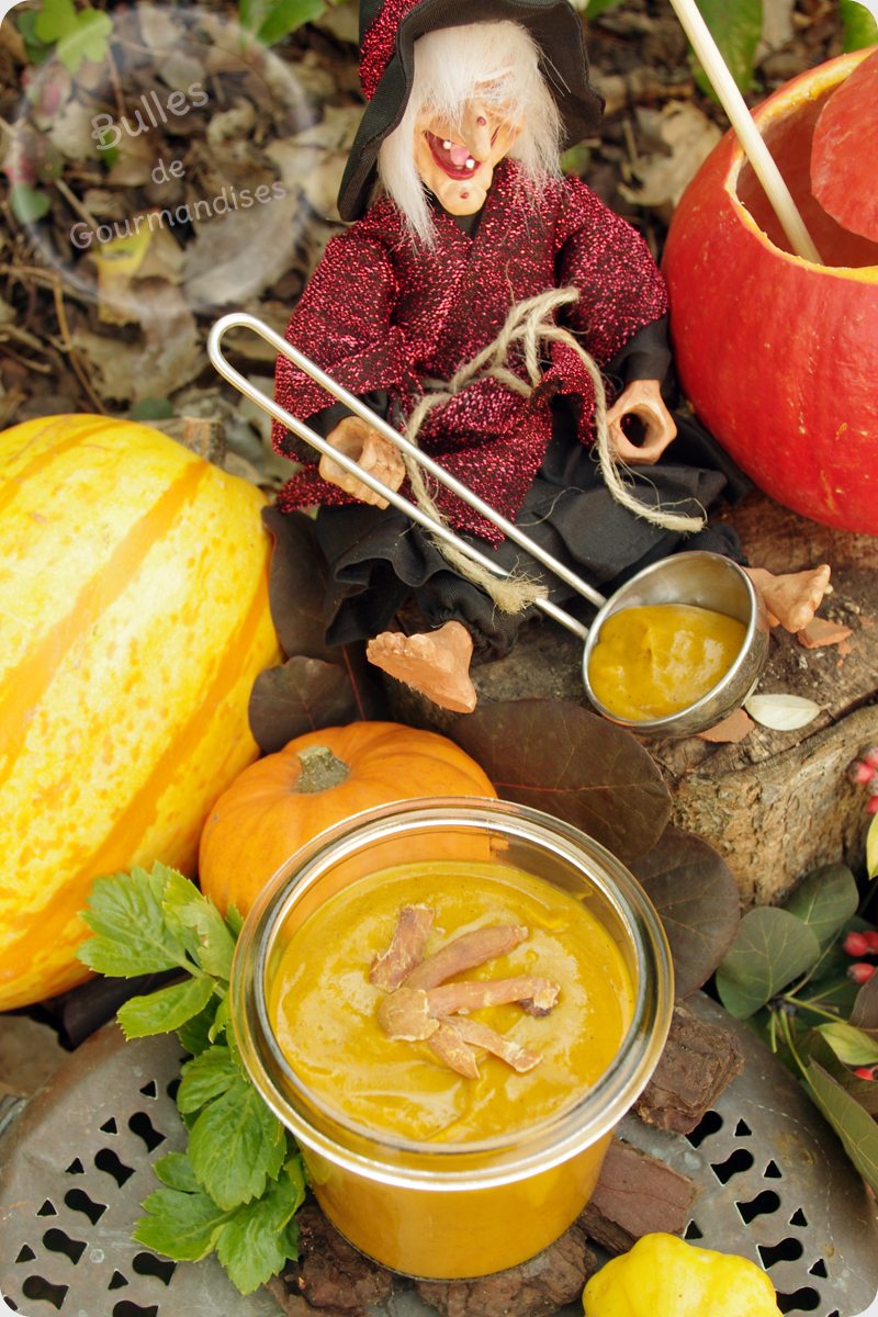 elle est superbe ta photo avec la mise en scène de la sorcière … j’aime beaucoup !! cette crème de potimarron est riche en saveurs !!