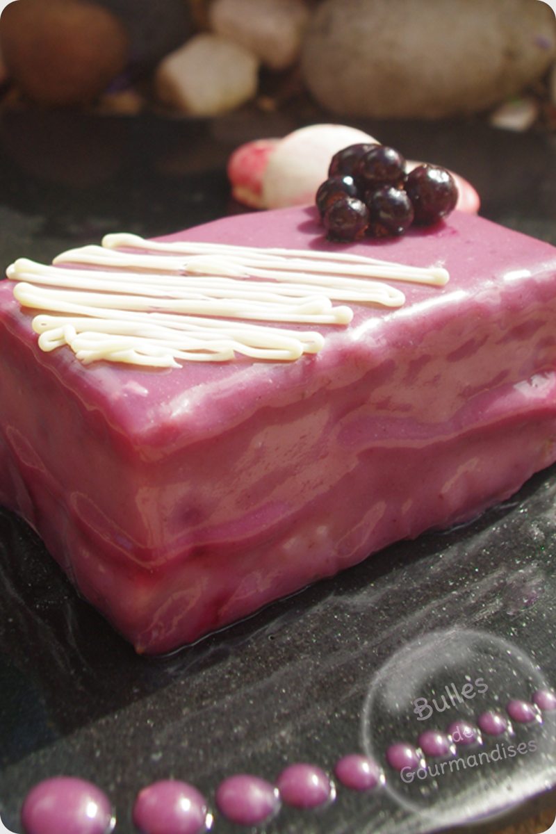 A l’aide d’une louche, versez le glaçage miroir au cassis sur chacune des parts en faisant couler sur toute la surface.