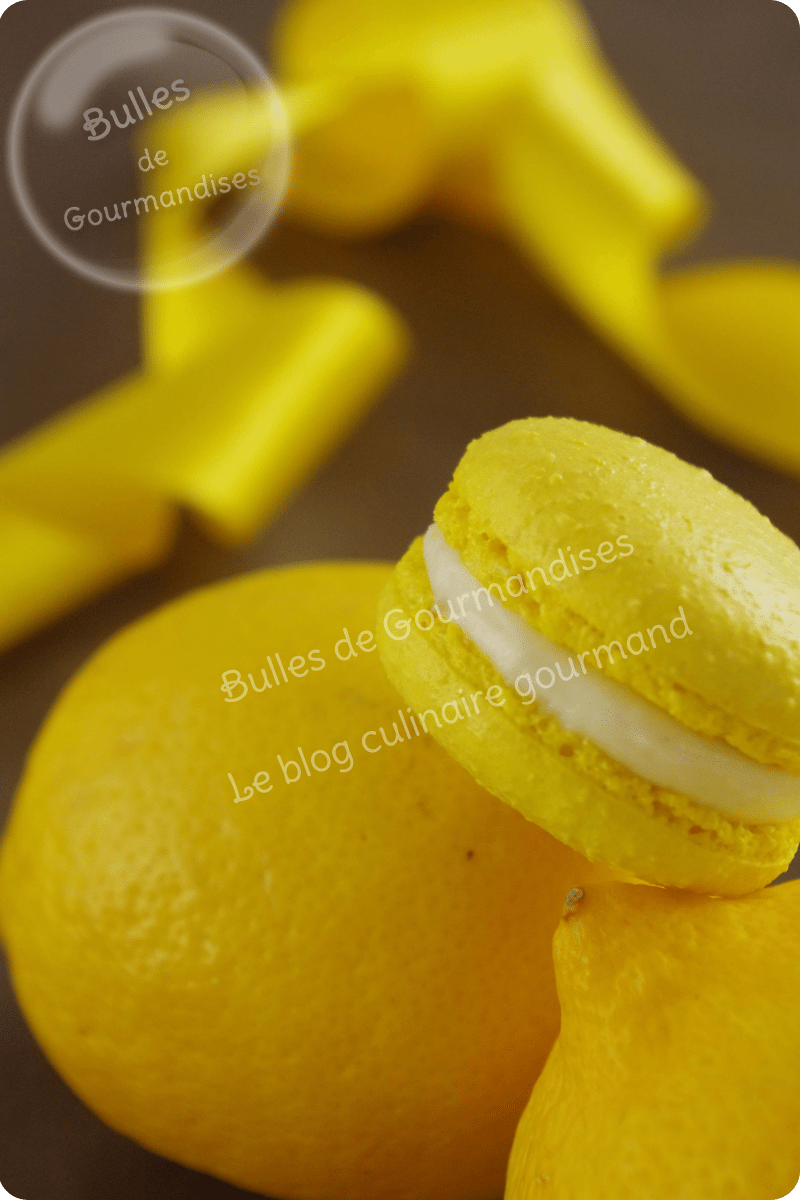 Vraiment tres beau les macarons au citron. Je vais essayer de faire les memes pour offrir a noel.